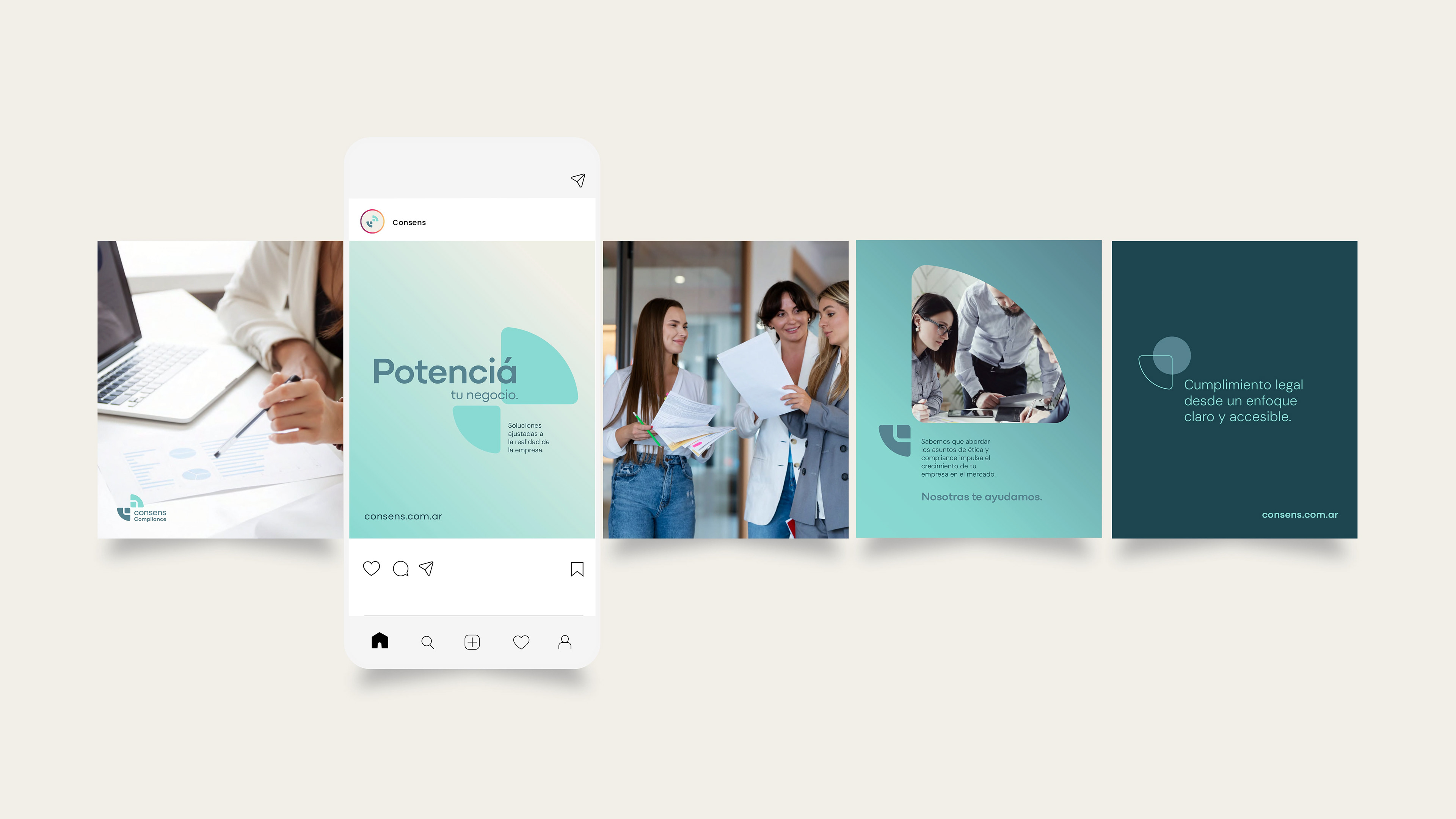 Consens es una marca comprometida y cercana. Conectada con el propósito de asesorar a sus clientes en el cumplimiento de sus obligaciones legales desde un enfoque claro, positivo y accesible, potenciando su crecimiento. Una marca ágil, profesional y transparente.